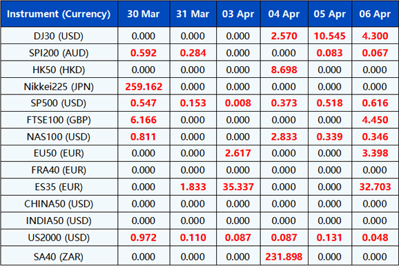 Please note the above data are subject to changes. Please refer to MT4/MT5 for details.